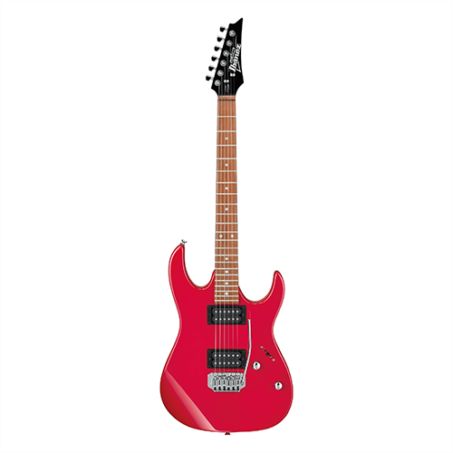 The GRX22EX features a poplar body bolted to a maple neck with a 22-fret jatoba fretboard with white dot position markers. Components include a pair of Ibanez Infinity R humbucking pickups mounted in pickup rings, and a six-screw synchronised tremolo bridge and plastic nut.