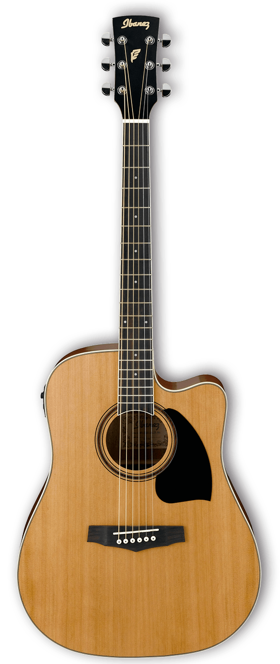 The Ibanez PF17ECE-LG Electro-Acoustic Guitar Natural is a 6-string electro-acoustic guitar, with a dreadnought body, a cedar top, mahogany back, sides and neck, a rosewood fingerboard, and a natural finish. With PF Performance guitars, you get professional features, quality, and great sound at extremely inexpensive prices backed by the Ibanez name and quality. Featuring a stylish cutaway dreadnought body, this guitar is constructed from a mainly mahogany composition, in the back, sides and neck.