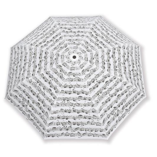 Mini umbrella featuring a black-on-white sheet music design.